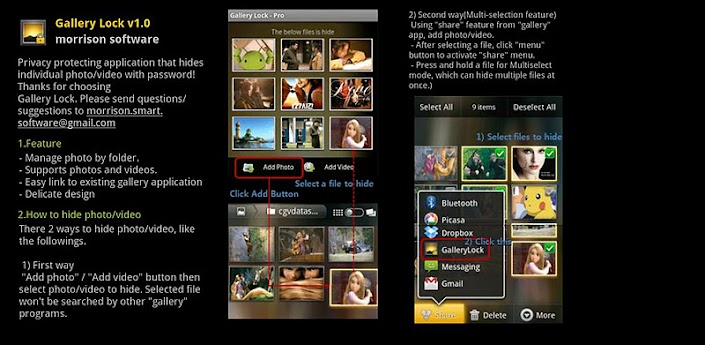 Gallery Lock manages photos and videos by individually hiding them and it is an app that is absolutely needed for protection of personal privacy. The product is one of the most popular apps in the world and is one of the top 10 apps sold on Google Market.