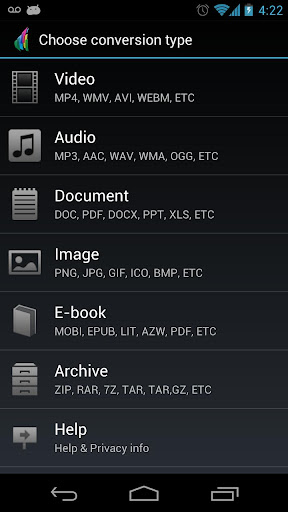 Convert Video, Audio, Images, Documents, E-books and archives between nearly any file formats! The most complete and full-featured file converter on the market!